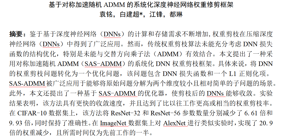 下一篇:基于再权重交替方向乘子法的深度神经网络权重剪枝方法